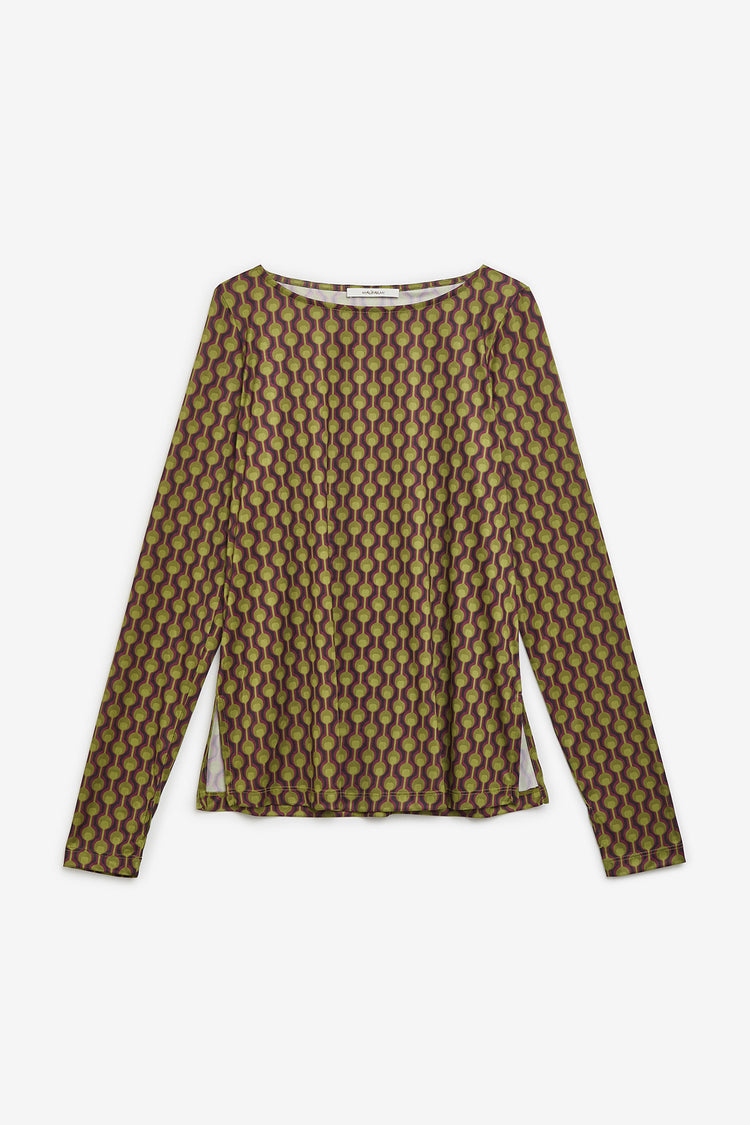 T-shirt con scollo a barchetta, in jersey tecnico stampato.